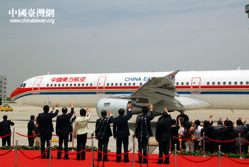 送行人员挥手送别中国国民党主席吴伯雄一行。(摄影:中国台湾网 田云鹏)