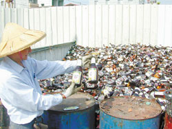 提神饮料已造成台湾地区新的环保问题,对环保志工而言,大量的回收空瓶也不大好处理。台湾《中国时报》资料照片