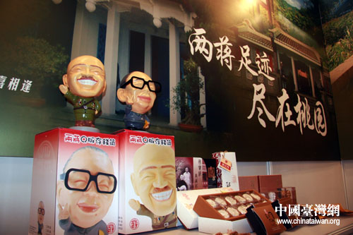 桃园县营销观光局处长陈国君手持两尊“两蒋”公仔出场备受瞩目。他表示:桃园县坐拥“两蒋”资源,会将充满历史文化情结的“蓝色之旅”进行到底。据透露:今年4月刚刚对外开放的神秘后花园——“后慈湖”地区,是蒋介石在台岁月中台湾地区的行政权力中心,相信会成为吸引大陆游客的“杀手锏”。由于桃园县比邻机场,近水楼台更有接待“团进”的天然优势,预计初期环岛行,大陆游客将有一天停留时间,可以欣赏到包括台湾地区所有蒋介石铜像、国共高层珍贵书信往来资料以及远负盛名的慈湖陵寝仪仗等内容。