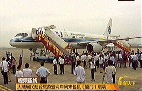 中国台湾网7月4日消息 今天早上7时25分,厦航的MF881/2航班从厦门机场起飞,这是两岸周末包机厦门航点执行的首架次飞行任务,也是今天大陆居民赴台游暨两岸周末包机出发的第二个航班。这架目前从大陆到台湾航程最短的航班,将在不到90分钟后抵达台北松山机场。