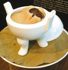 台北“故宫晶华”餐厅筵席中的弦纹鼎,就是一道鱼翅料理,岛内外动物保护团体指责“故宫”把鱼翅料理当宝,破坏动物保护形象。台湾《联合报》资料照片