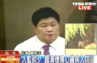 台湾无党联盟“立委”颜清标入狱前夕心脏病发作入院,来源:台湾TVBS电视台