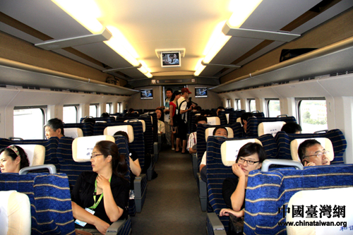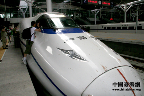中国台湾网7月31日北京消息 “坐火车,看奥运。”作为北京奥运会的重点配套工程,中国首条城际高速铁路——京津城际铁路将于8月1日正式开通运行,7月31日,记者登上采访专列亲身体验了“高铁”的方便快捷。