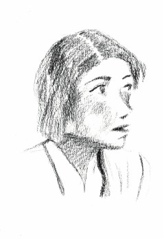 马元中为妈妈周美青画的素描,刊载在台湾《子天下》刊号中的周美青专栏。
