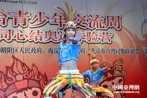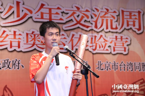 开幕式上,京台两地学生用精彩的文艺节目来表达两岸青少年欢聚北京、共庆奥运的喜悦之情,北京四中奥运火炬手李昕旸同学还在现场与台湾同学分享圣火传递的难忘经历。