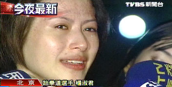 报道称,昨天采访才刚开始,在女子49公斤级铜牌争夺战中痛失奖牌的杨淑君,眼泪已经控制不住。杨淑君说:“就为自己难过,因为我觉得我今天真的没有表现的很好,那让全台湾的人民都很失望,我真的会继续加油。”