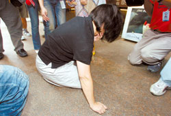 台检方侦办公务机要费与陈水扁家庭岛外洗钱两大案,认定前陈水扁办公室出纳陈镇慧就是突破两案的核心,4日陈镇慧被约谈离开时遭到大批媒体包围,她用手捂住脸,不小心一个踉跄摔倒在地。台湾《中国时报》图