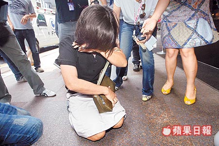 陈镇慧昨离开特侦组后为躲避媒体采访,一路奔跑,不慎跌坐地上掩面痛哭。台湾《苹果日报》图