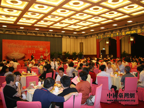 中国台湾网9月9日消息 由台盟中央、全国台联主办的“2008在京台胞中秋茶话会”9日在全国政协礼堂举行。在京的台湾企业家、台湾学生、台胞代表等450余人欢聚一堂,畅叙亲情乡谊,喜迎中秋佳节。全国政协副主席、台盟中央主席林文漪,全国人大常委、全国台联会长梁国扬,全国人大常委、台盟中央常务副主席汪毅夫等出席了茶话会。
