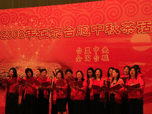 中秋佳节来临前夕,由台盟中央、全国台联主办的“2008在京台胞中秋茶话会”在全国政协礼堂举行。图为联谊晚会现场。(摄影:董洁)