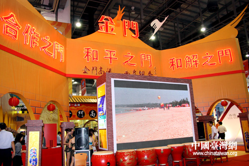 金门县参加第四届海峡旅游博览会打出“ 合作之门 和平之门 和解之门”响亮口号,配以利好政策助阵,成为全场焦点(李徽 摄)