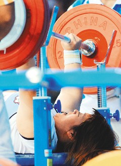 连病魔都击不垮,林资惠什么也不怕,就这样苦练了两年,昨天在北京残奥会女子举重75公斤级,第一次试举就以137.5公斤技惊全场,顺利拿下金牌。