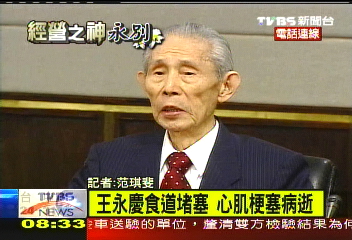 据台媒报道,王永庆因为担忧美国金融风暴对台湾的冲击,在11日带着夫人和子女前往美国视察旗下的生产线和房产,没想到在美国东部时间15日早上被送进新泽西一家医院,9点38分因心肺功能衰竭而过世,享寿92岁。