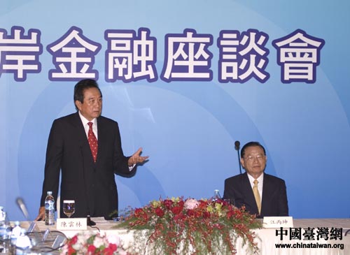 两岸金融座谈会今天上午在台北圆山饭店举行,海协会会长陈云林与海基会董事长江丙坤出席。中国台湾网 田云鹏摄