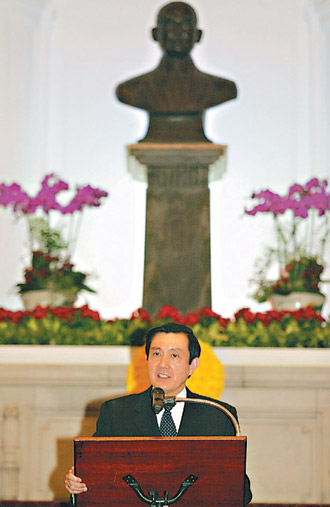 马英九高度推崇孙中山理念与精神,2006年访问新加坡时曾参观“晚晴园”,望着孙中山塑像落泪;马英九当时解释是有感于孙中山为民主勇于献身的伟大精神。担任国民党主席期间,马英九经过国民党部一楼大厅,更会留步向孙中山铜像敬礼;中央党部搬到八德大楼,马也坚持保留孙中山铜像。(赵静)