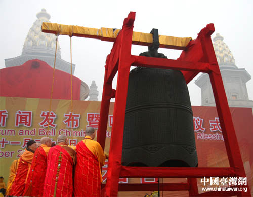 中国台湾网11月24日无锡消息 昨天上午,第二届世界佛教论坛新闻发布暨鸣钟祈福仪式在无锡灵山举行。中国佛教协会会长一诚长老、国际佛光会总会长星云大师、香港佛教联合会会长觉光长老于同一时刻分别在无锡、高雄、香港三地敲响祈福钟声。带着两岸三地佛教界对世界和平、社会和谐、两岸和睦的美好祝愿,庄严深沉的钟声远扬。