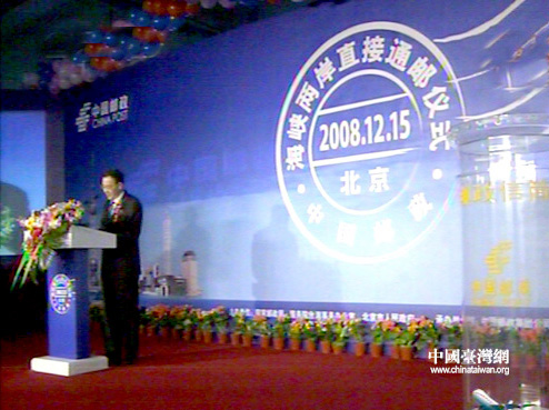 国务院台湾事务办公室副主任孙亚夫、海峡两岸关系协会副会长张铭清、国家邮政局局长马军胜、北京市人民政府副市长苟仲文、中国邮政集团公司总经理刘安东以及中国国民党副主席林丰正出席了海峡两岸直接通邮启动仪式。