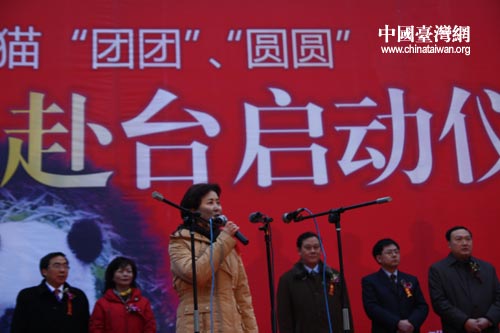 12月23日,四川雅安碧峰峡基地举行大熊猫赴台启动仪式。中共雅安市委副书记张锦明宣布赠台大熊猫“团团”、“圆圆”启程。中国台湾网 田云鹏 摄