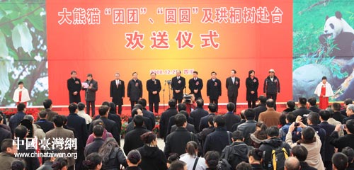 12月23日,成都双流机场为赠台大熊猫和珙桐树苗举行欢送仪式,这是欢送仪式现场。中国台湾网 田云鹏 摄
