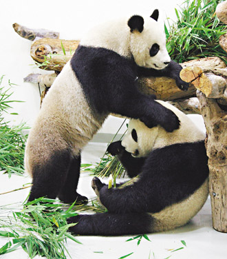 熊猫团团圆圆昨日入住木栅新家。台湾联合报图
