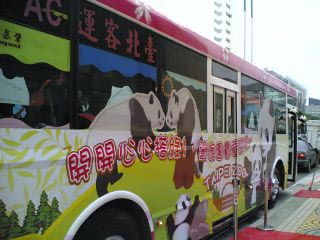 中国台湾网12月26日消息 据台湾“中央社”报道,为了抢搭大熊猫热,行驶台北县新店经台北动物园到台北市政府的捷运接驳绿1线,今天起推出全车彩绘大熊猫图案的大熊猫公交车。