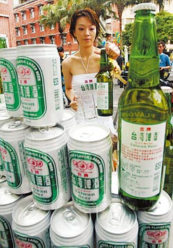 据报道,“台湾啤酒”商标明年2月在大陆公告,5月将登陆;图为金牌台啤上市时特别请来美女促销。(台湾《中国时报》资料图片)