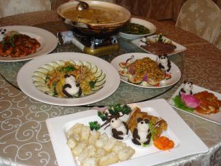 报道称,“团团”“圆圆”在台湾过年,台湾饭店餐厅业者也抢搭大熊猫热,推出除夕大熊猫团圆年菜,年菜餐点有可爱的大熊猫装饰。