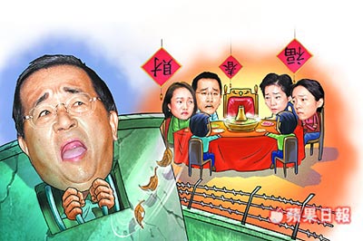 漫画:陈水扁确定将在看守所过春节,陈水扁一家难团圆。来源:台湾《苹果日报》