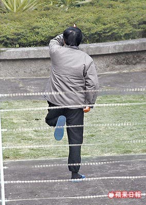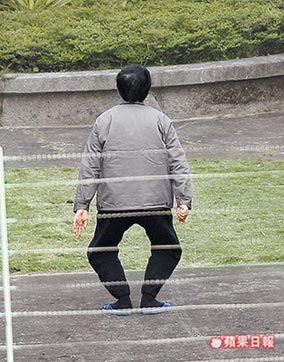 陈水扁放风时做金鸡独立状。来源:台湾《苹果日报》