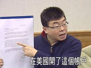 中国台湾网1月16日消息 据台湾“今日新闻”报道,国民党“立委”邱毅继15日爆料陈水扁疑似用民进党的名义在美国美商美联银行设立密帐后,今日上午更进一步爆料,美商美联密帐汇回台湾的款项仅149万(新台币,下同),其余2000万美元则被转到美国花旗银行的账户中,而该账户的所有人正是陈水扁之子陈致中。