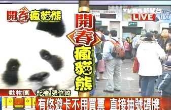 今天早上8点半首批入园参观的民众,因为人潮众多,直呼看大熊猫的时间太短了,不过瘾。而在高雄,今天也有2个旅行团一早出发,北上游玩,其中最重要的行程就是要去台北动物园看大熊猫。台北动物园表示,因为每日的名额有限制,想看大熊猫的民众也可上木栅动物园网站,事先查询今日的名额限制还剩多少。(沈鹏)