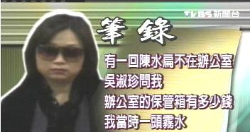 中国台湾网2月11日消息 据台湾“TVBS”报道,陈水扁任台湾地区领导人期间,其办公室是否有小金库?这个答案似乎已经获得证实,前陈水扁办公室出纳陈镇慧在笔录供称,吴淑珍曾要她结算陈水扁办公室保险箱里钱的金额,她就在前陈水扁办公室秘书陈心怡的陪同下,一起进入办公室,才知道原来还有这么一个保险箱,当时现金可能有新台币上千万元。