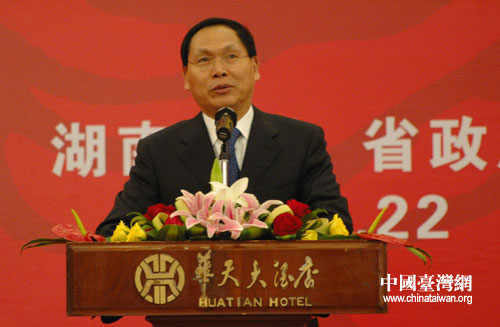 湖南省台办主任龚文密主持招待晚宴。(卢文君 摄)