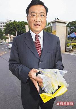 陈水扁办公室秘书江志铭昨带吴淑珍为陈水扁准备的食物前往看守所,但遭退回。来源:台湾《苹果日报》