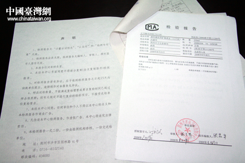 荆州市疾病预防控制中心向记者出示送检“问题水”的检验报告
