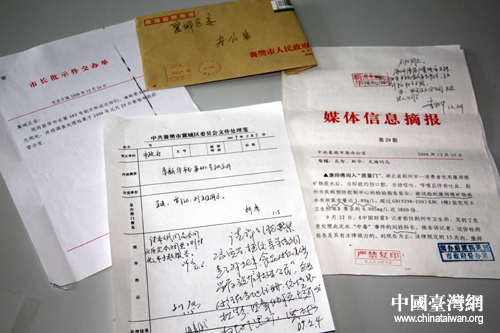 襄樊市襄城区政府办公室副主任胡章斌,向记者出示针对此事件的媒体信息摘报、市长批示件交办单等资料。