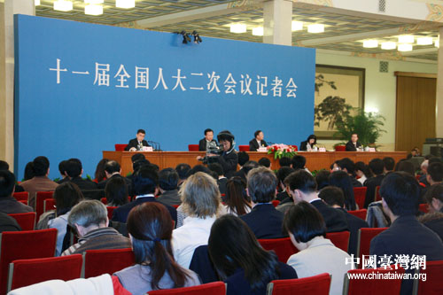 中国台湾网3月7日北京消息 十一届全国人大二次会议于3月7日(星期六)上午10时在人民大会堂三楼金色大厅举行记者会,由外交部部长杨洁篪就外交政策和对外关系问题回答记者问。(图文/钟宝华)