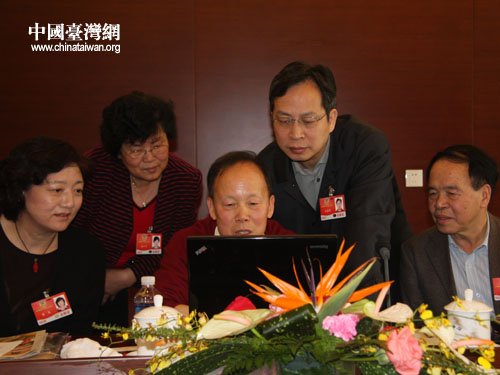 中国台湾网3月10日北京消息 今天上午,全国政协会议台联界别组正在举行热烈的小组讨论,一位身着戎装的解放军记者突然带着两台相机出现在会场,并向台联组的两位军人委员热情的打招呼。这时在场的其他委员和记者才恍然大悟,今天黄植诚和林贤顺两位委员之所以穿着笔挺的军装出席小组讨论,是因为早就心知肚明要“出镜”呢!(贺晨曦 文 贺晨曦/赵辉 图)