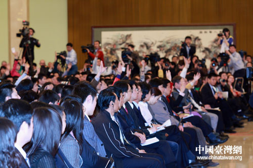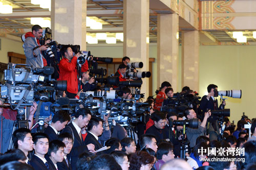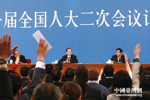 中国台湾网3月13日北京消息 今天上午,十一届全国人大二次会议在北京人民大会堂闭幕。闭幕会后,国务院总理温家宝在人民大会堂与中外记者见面,并回答记者提问。(图文/钟宝华)
