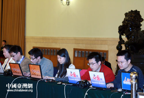 人民网、中国网等现场直播温家宝总理与中外记者见面会。(钟宝华 摄)