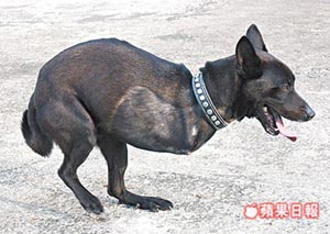 流浪狗因车祸前肢被截,只能像袋鼠般用后脚跳跃前进。来源:台湾《苹果日报》