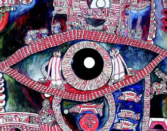 台湾地区现代版画先驱江汉东4月1日病逝,他的画作以简练线条营造出梦幻般的超现实意境,图为他的作品《眼睛的造型》。图片来源:台湾《联合报》