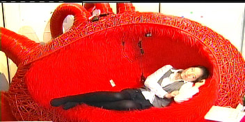 报道称,这款大红色沙发鲜艳抢眼,仿照心脏外型设计,周围布满密密麻麻的“血管”,有一个人身高的宽度,左躺、右躺、侧躺、或坐着休息、任意翻滚,都不受干扰。一位学生谈到,“感觉很舒服而且很自在,有种安全感,一整天都想要在里面,陷进去了。”