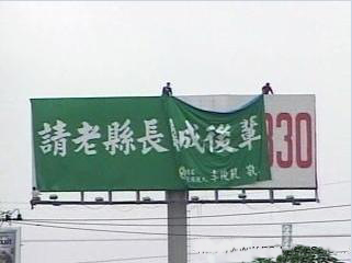 李俊毅刊登“请老县长(指陈唐山)牵成后辈”的户外广告 来源:台湾“今日新闻”