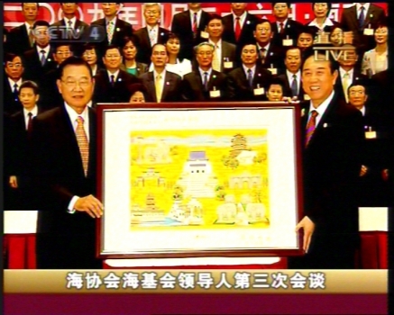 江丙坤向陈云林赠送皮雕 (CCTV截图)