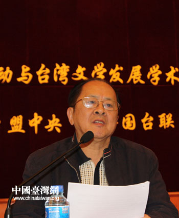 “‘五四’运动与台湾文学发展学术报告会”今天上午举行,图为刘登翰发表题为《五四精神与台湾新文学》的演讲。(中国台湾网记者 杨丽 摄)