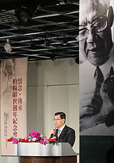 萧万长昨日出席已故台湾著名作家柏杨的逝世周年纪念会,以好友身分上台致词。