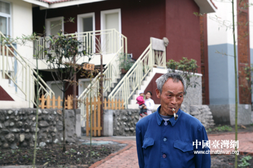 在“鹿鸣河畔”,63岁的王老汉身后的住宅将成为“商住两用”的乡村式酒店。 (中国台湾网 田云鹏 摄)