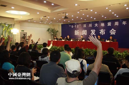 四川省委、省政府在成都举行“5·12汶川大地震周年” 新闻发布会,向社会各界通报灾后重建的情况。(中国台湾网 钟宝华 摄)