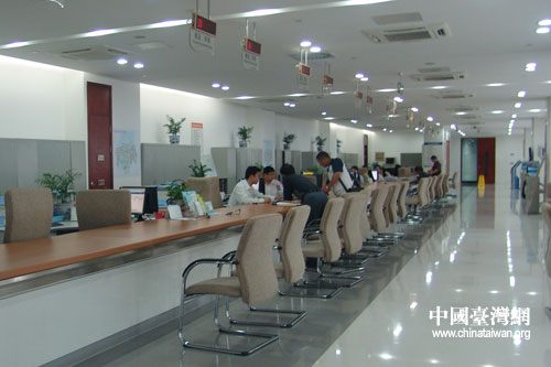 舒适的大厅内,中心工作人员热情地为客户办理业务。(中国台湾网 李典典 摄)